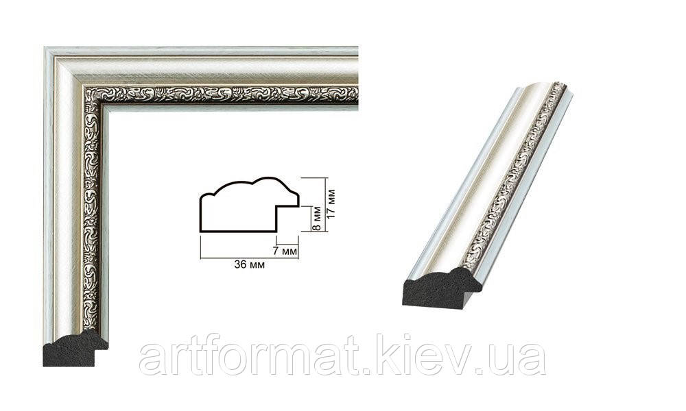 Пластикова Рамка формату 50х70.Колір "срібла з орнаментом".Ширина профілю 33 мм. Підходить для оформлення картин,постерів ,фото,вишивок.